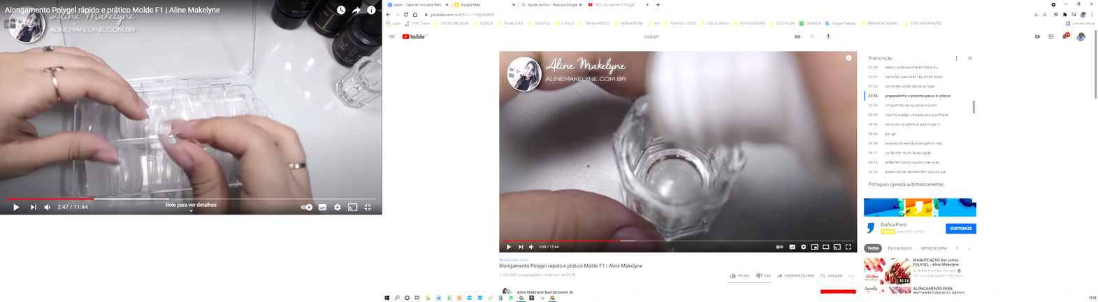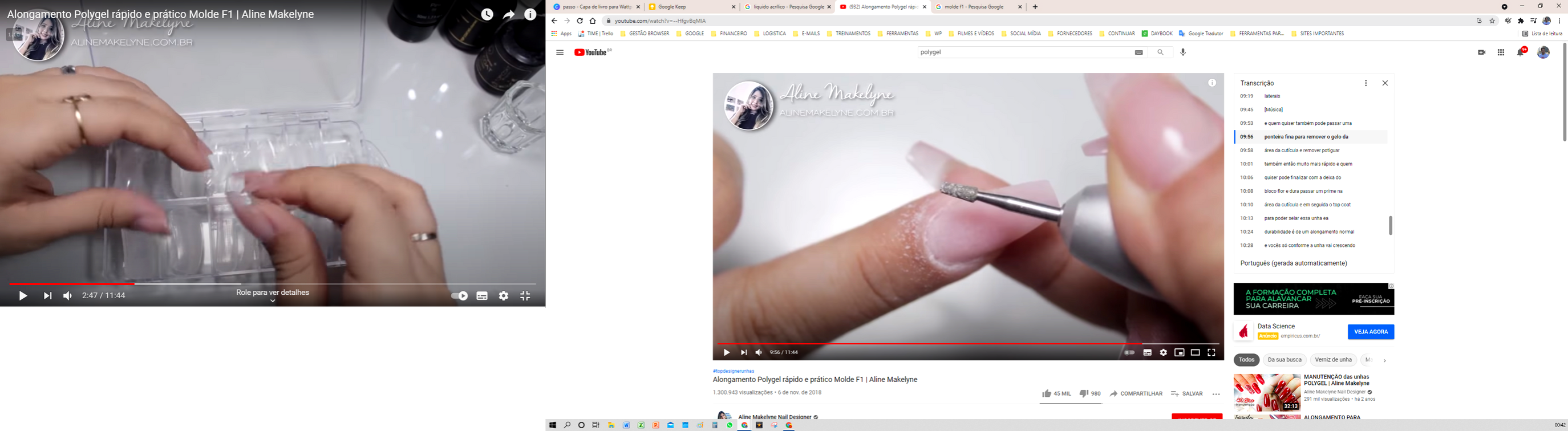 O próximo passo é colocar um pouquinho de líquido acrílico em um copinho e pegar uma pequena quantidade com pincel pra moldar o polygel, esse líquido não é obrigatório mas vai facilitar muito o trabalho.