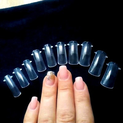 Pra fazer o alongamento você vai usar o molde F1. O kit tem todos os tamanhos padrões de unha, como se fosse uma unha postiça ou uma tips. Você precisa escolher o molde correto que combine com cada um de seus dedos, sem deixar espaço na unha, o molde tem que encaixar perfeitamente até os limites da unha ( cutículas).